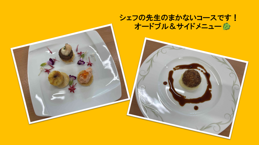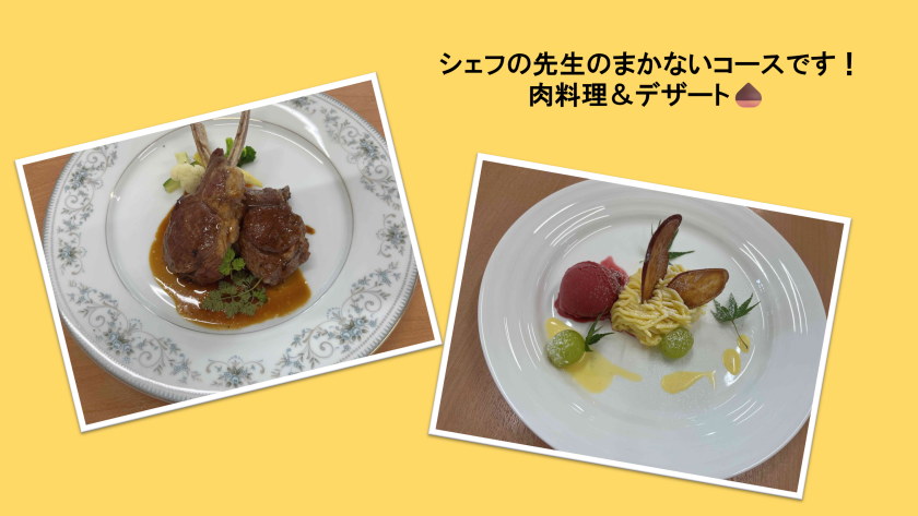 今回は、総合調理実習のガイダンス時のまかないコースと西洋コース料理の試作の一部を紹介しました。今後、本番へ向けて、学生たちが改良を重ね完成させていきます。前期同様、何らかの方法でコース料理の完成版を発信していきますので、楽しみにしておいてください。