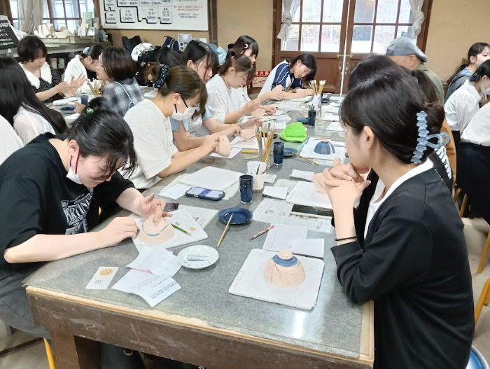 旅の2日目午前中は倉敷にて陶芸の絵付け体験です。