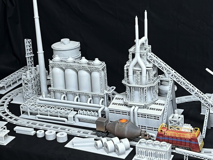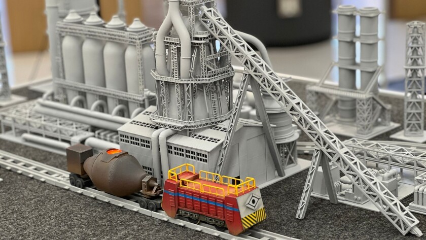 制作したジオラマは、PCとセンサーを連動させたインタラクティブな仕組みになっており、 デフォルメした製鋼所の構内を再現。機関車やトピードカー(溶けた鉄を運ぶ車両)がモーターで走行しながら、 ジオラマ内のミニチュアで再現された各設備で同社のコア技術を紹介する内容となっています。
