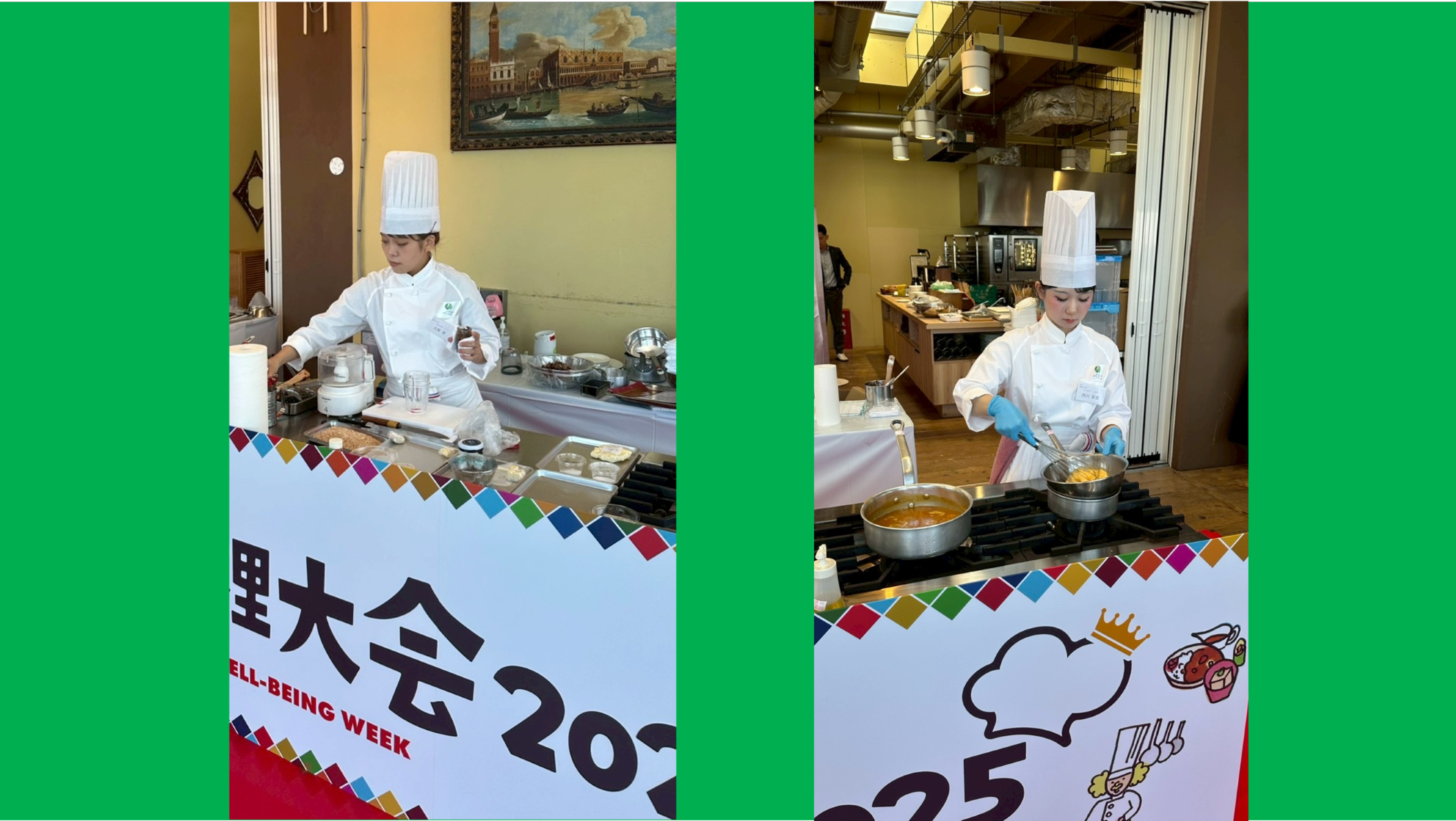 本日は素敵なご報告です。先月、兵庫県淡路島Ocean Terraceにて開催された「ユースフェス王料理大会2025」の個人戦に見事決勝進出となり、食文化学科4年生の大坂芽さん、3年生の西川彩愛さんが出場されました! お二人に工夫されたところや感想を伺いました!!