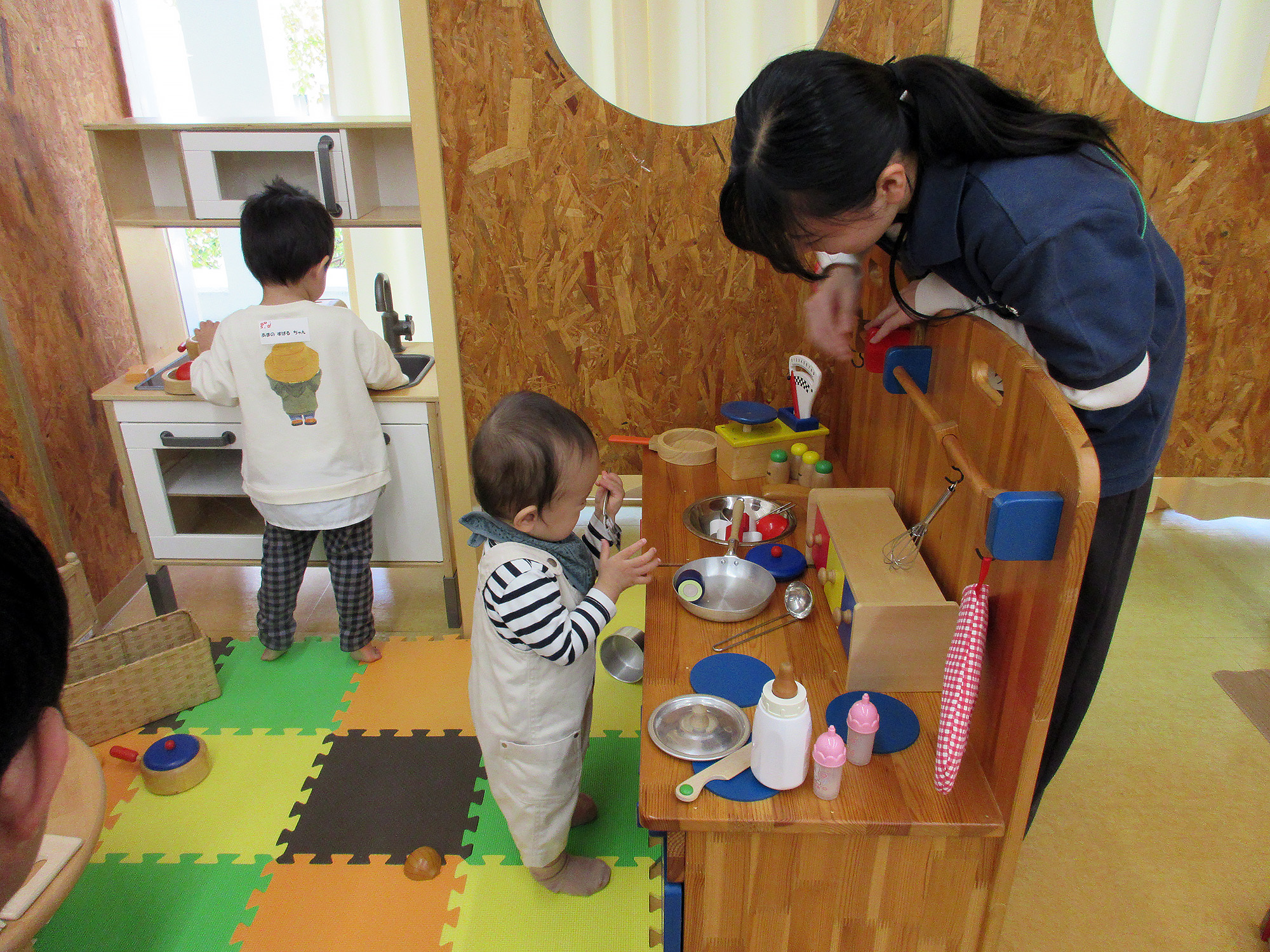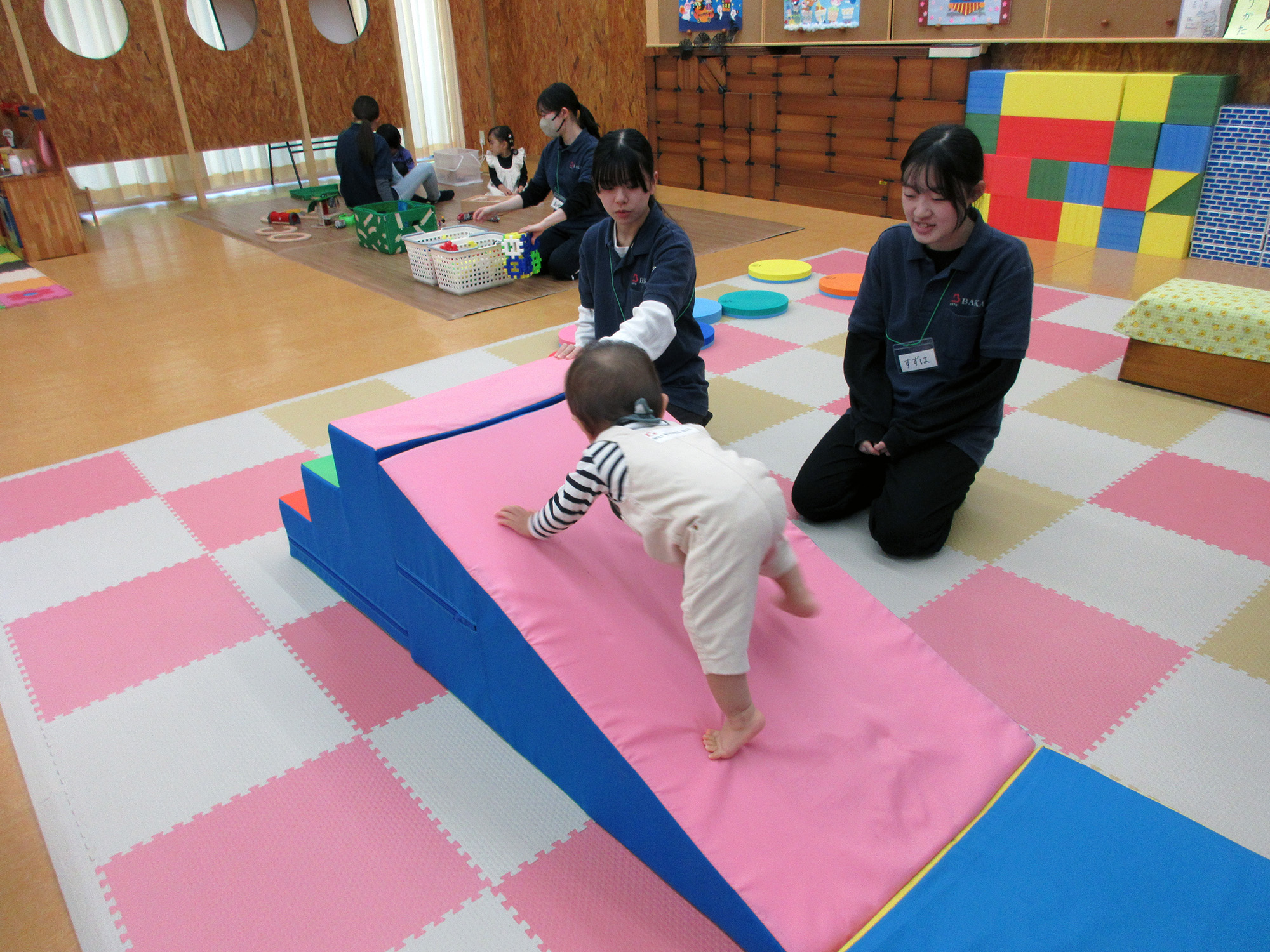 学生たちとおままごとをしたり、すべり台で遊んだり。