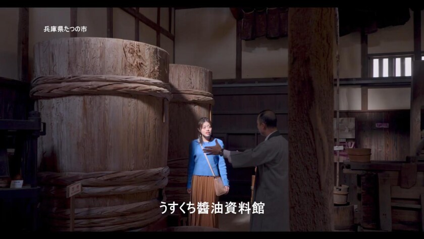 東マル醤油本社や「揖保乃糸」で知られるたつの市にて、 一般社団法人 龍野重文重伝トラスト様より、たつの市PR CM制作のお話をいただき、元情報メディア学科教授・遠山プロデューサーの指揮のもと、学生たちとともに制作を行いました。