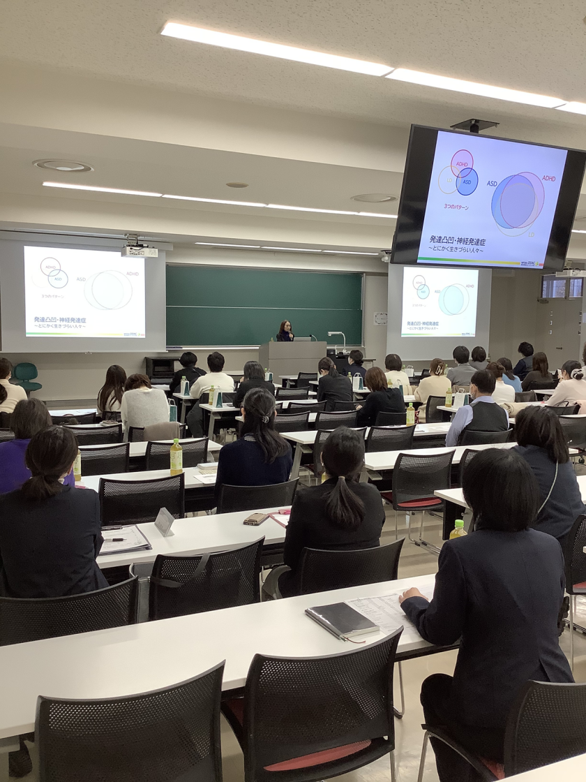大人の発達障害が増加している現状と、それそれの発達障害の特性や生きづらさについて、経験を交えながらお話しいただきました。当事者にはどのように聞こえているのか、なぜそのような言動につながるのか、感覚や認知の違いをあらためて気づかされる講義でした。多様性が進む社会の中で、どのようなかかわりが必要なのか考える貴重な場となりました。