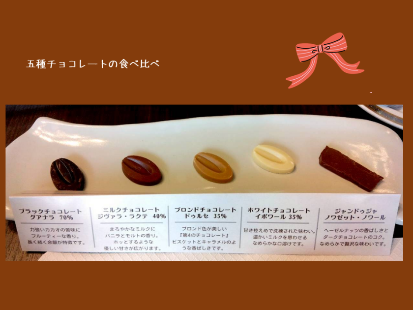 そしてそして今回はなんと!五種のチョコレートの食べ比べも。