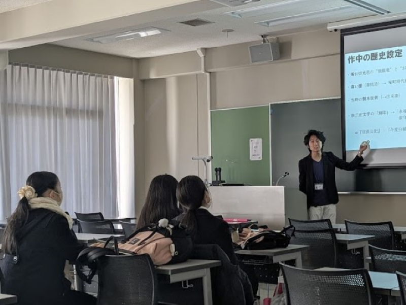 学科それぞれの個性を活かしたミニ授業が準備されており、日本文化学科では、「『刀剣乱舞』と日本の歴史」と題するミニ授業が開講されました。