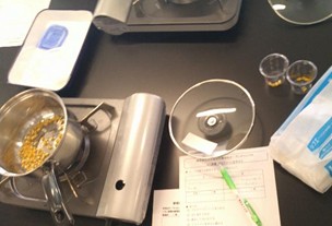 加熱によって、1種類のトウモロコシのみがポップコーンになる原理について講義がありました。