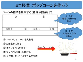 本日は、竹本先生による「ポップコーンを作ろう!」というミニ授業が行われました。
