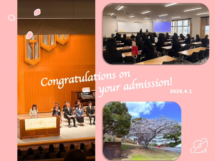 4月1日、梅花女子大学では入学式が執り行われました。少し緊張しながらも期待に胸を膨らませる新入生たちの姿に、私たち教職員も背筋が伸びる思いです。